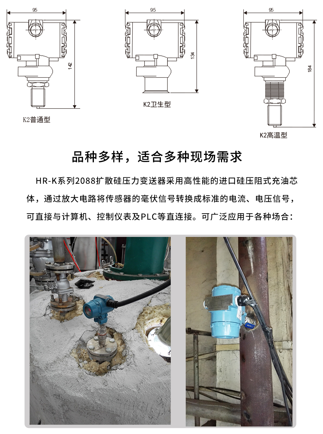 虹潤(rùn)公司是專業(yè)生產(chǎn)壓力變送器的國(guó)家專精特新“小巨人”企業(yè),生產(chǎn)的擴(kuò)散硅壓力變送器,具有精度高,穩(wěn)定性好,響應(yīng)速度快,高可靠性,抗過載和抗沖擊能力強(qiáng),安裝方便等特點(diǎn)。產(chǎn)品獲得一種數(shù)字顯示低功耗壓力表、一種信號(hào)發(fā)生器裝置等2項(xiàng)國(guó)家發(fā)明專利,主持起草工業(yè)過程控制系統(tǒng)用模擬輸入兩位或多位輸出儀表、工業(yè)過程測(cè)量和控制系統(tǒng)用壓力/差壓變送器等2項(xiàng)國(guó)家標(biāo)準(zhǔn),通信系統(tǒng)多通道數(shù)據(jù)采集控制終端規(guī)范軍用標(biāo)準(zhǔn),以及現(xiàn)場(chǎng)設(shè)備集成等5項(xiàng)智能制造國(guó)家標(biāo)準(zhǔn)。參與國(guó)際5G標(biāo)準(zhǔn)制定,取得數(shù)顯壓力表等2項(xiàng)相關(guān)軟件著作權(quán)。產(chǎn)品廣泛應(yīng)用于化工、食品、制藥、電力、設(shè)備配套、供暖、水處理、樓宇等行業(yè),需精準(zhǔn)測(cè)量流體壓力的現(xiàn)場(chǎng)。