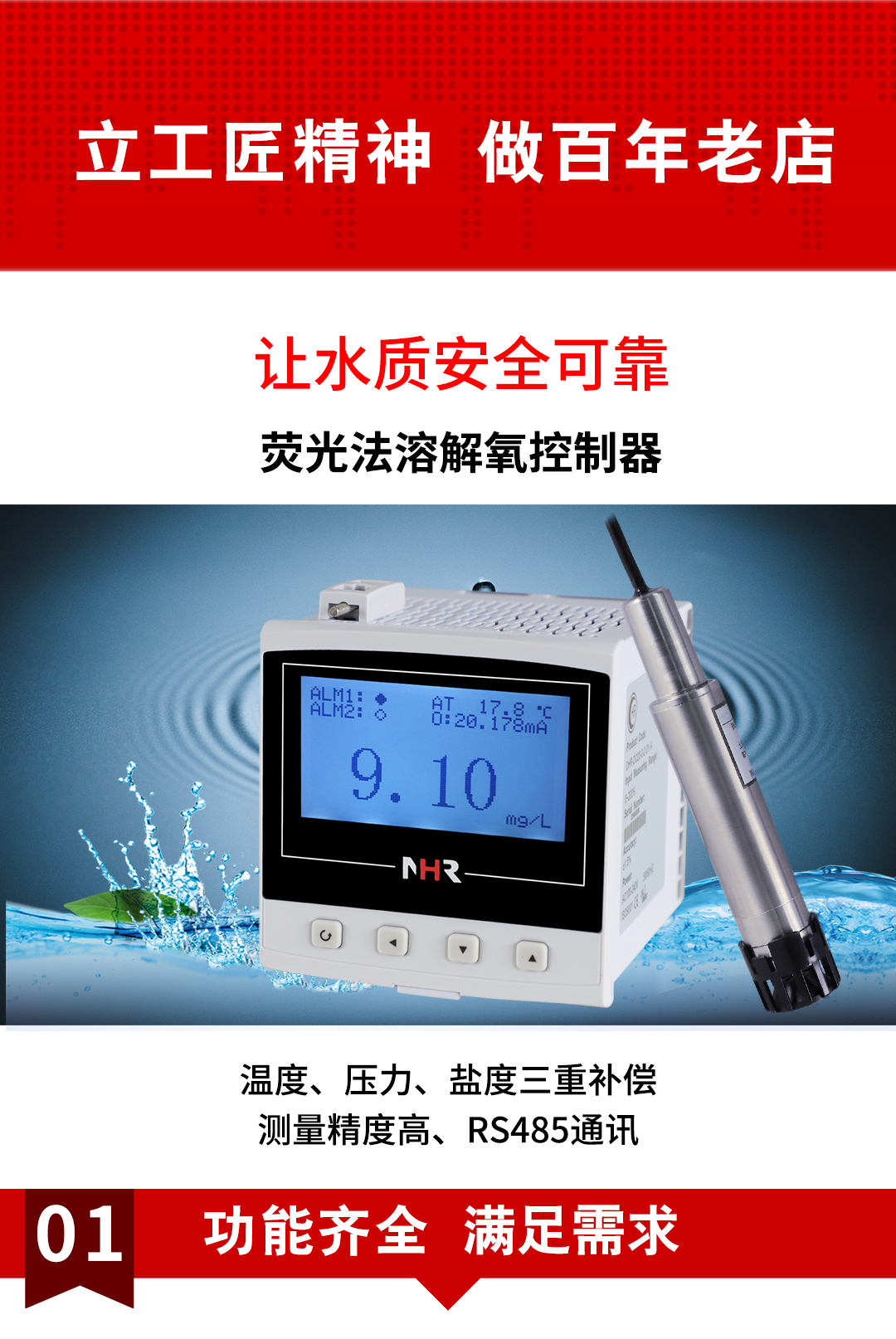 虹潤公司是專業(yè)生產(chǎn)水質(zhì)分析儀的國家專精特新“小巨人”企業(yè)。生產(chǎn)的熒光法溶解氧控制器,具有采用熒光法測量,中英文菜單切換 ,溫度、壓力、鹽度三重補(bǔ)償,標(biāo)配報(bào)警、變送、RS485通訊等特點(diǎn)。產(chǎn)品獲得產(chǎn)品獲得一種高精度在線溶解氧測量儀表、智能化控制器等2項(xiàng)國家發(fā)明專利;主持起草現(xiàn)場設(shè)備集成等5項(xiàng)智能制造國家標(biāo)準(zhǔn),以及現(xiàn)場設(shè)備工具(FDT)接口規(guī)范、工業(yè)過程控制系統(tǒng)用模擬輸入兩位或多位輸出儀表、過程分析技術(shù)系統(tǒng)、液體熒光氧分析儀的性能表示等4項(xiàng)國家標(biāo)準(zhǔn);參與國際5G標(biāo)準(zhǔn)制定,取得溶解氧測量儀表等2項(xiàng)相關(guān)軟件著作權(quán)。產(chǎn)品廣泛應(yīng)用于實(shí)驗(yàn)室、水處理、環(huán)境監(jiān)測、食品、制藥、農(nóng)業(yè)等諸多領(lǐng)域。