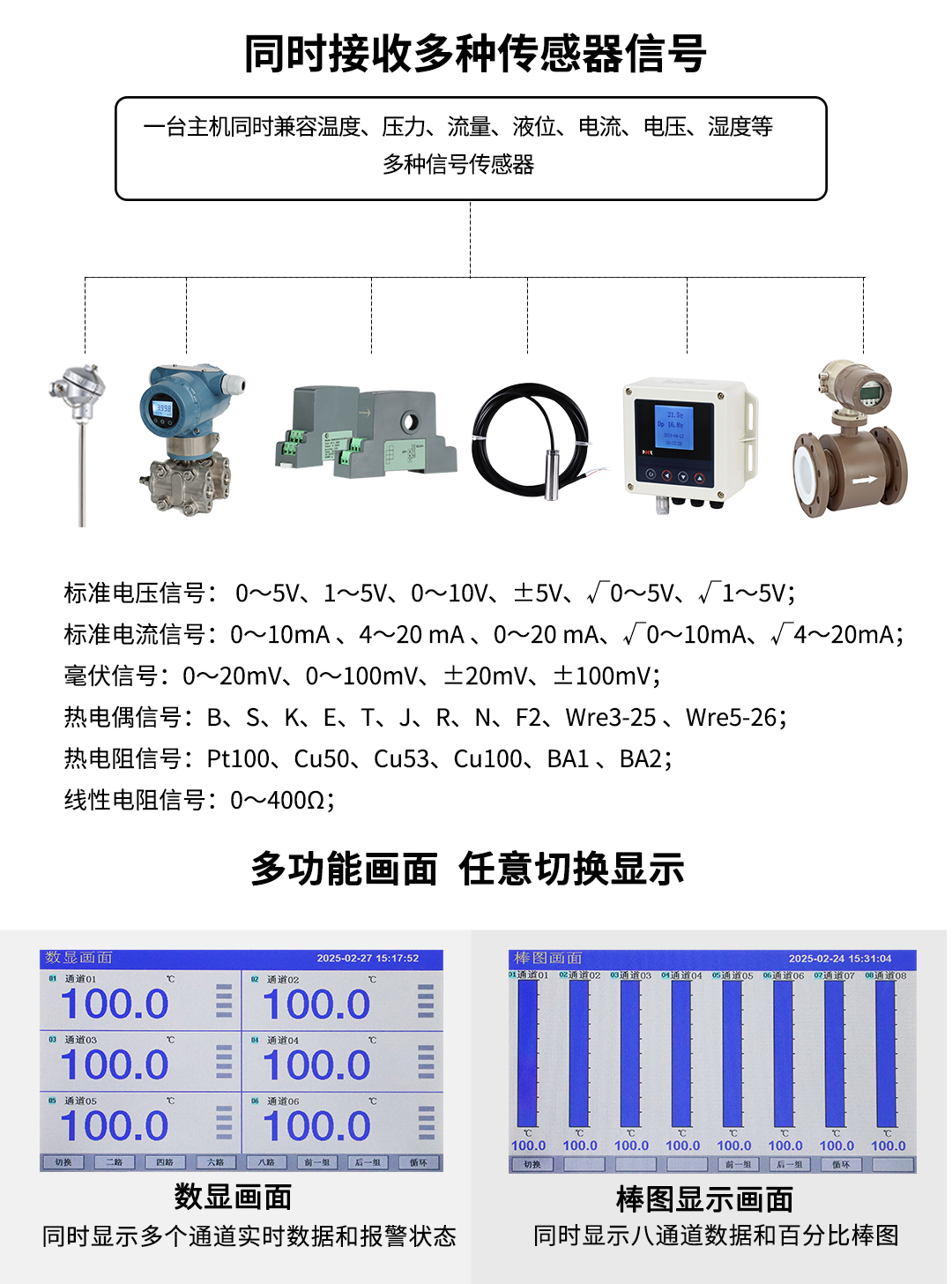 虹潤公司是專業(yè)生產(chǎn)無紙記錄儀的國家專精特新“小巨人”企業(yè)。生產(chǎn)的觸摸屏數(shù)顯表,具有觸摸大屏顯示,多通道全切換輸入,通道間隔離,RS485/以太網(wǎng)通訊,5/7/9英寸可選等特點。產(chǎn)品獲得無紙記錄儀、數(shù)據(jù)采集控制工作站、智能化控制器、巡回檢測顯示方法及裝置等4項國家發(fā)明專利,主持起草物聯(lián)網(wǎng)智能記錄儀表通用技術條件、物聯(lián)網(wǎng)智能溫度儀表通用技術條件等2項國家標準,通信系統(tǒng)多通道數(shù)據(jù)采集控制終端規(guī)范軍用標準,以及空間數(shù)據(jù)與信息數(shù)據(jù)傳輸系統(tǒng)等2項航天標準,參與國際5G標準制定,取得觸摸屏彩色無紙記錄儀等4項相關軟件著作權。產(chǎn)品廣泛應用于冶金、石化、電力、制藥、新能源、現(xiàn)代農(nóng)業(yè)生產(chǎn)過程等諸多領域。